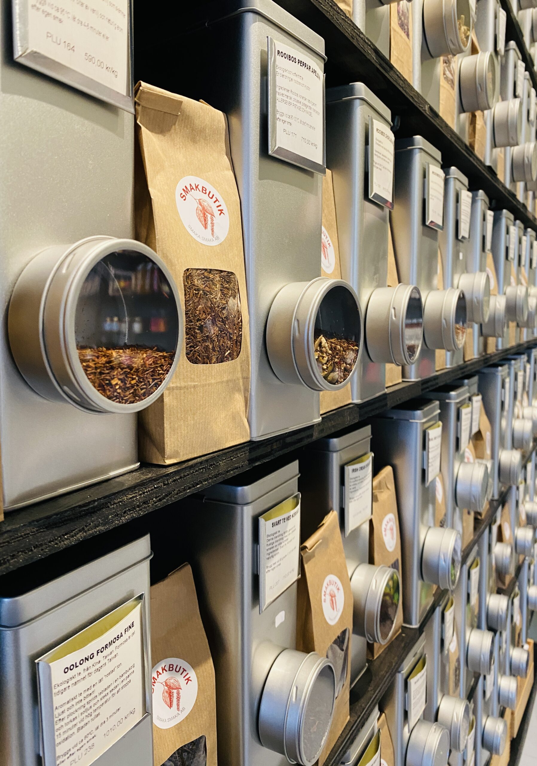 - Smakbutik, här hittar du över 250 olika kryddor från hela världen, 35 olika sorters peppar, 100 olika lösteer och en massa delikatesser såsom italiensk olivolja, holländskt jordnötssmör, spicy såser, marmelader , fermenterad vitlök med mera och naturligtvis även lokala smaker.