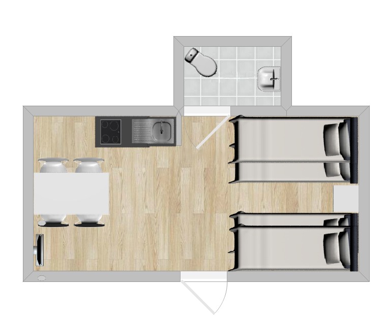Här kan ett sällskap på upp till 4 personer njuta av härliga dagar tillsammans. I stugorna 3-9 har ni den extra bekvämligheten att ha toalett i stugan.