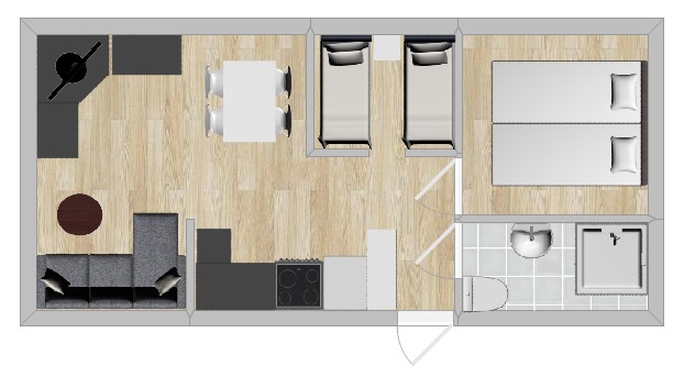 - 30 kvm med bäddar för 4 + 1 personer