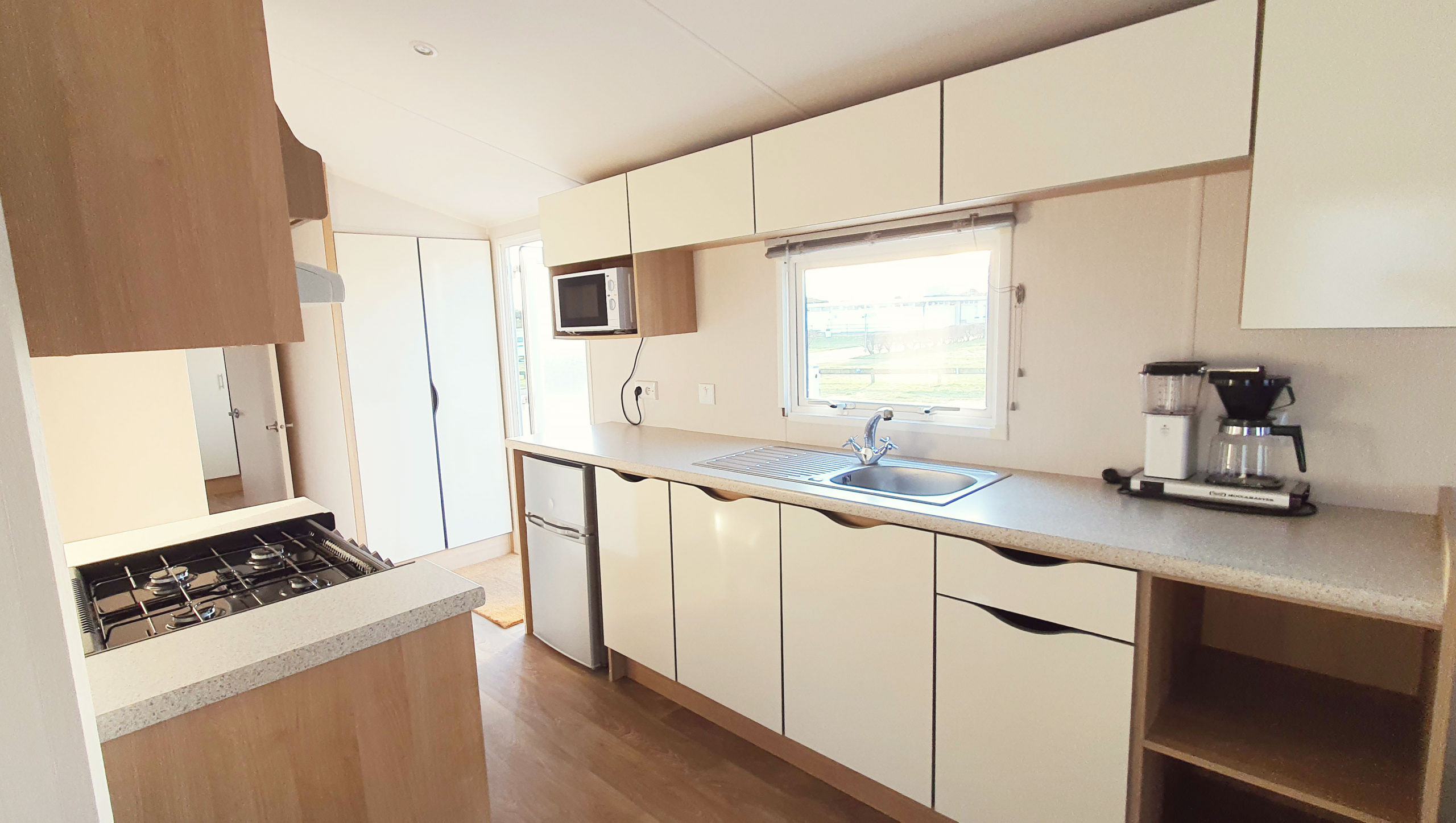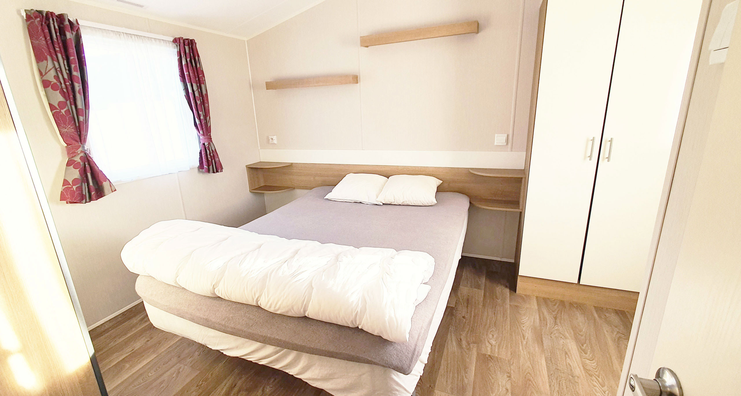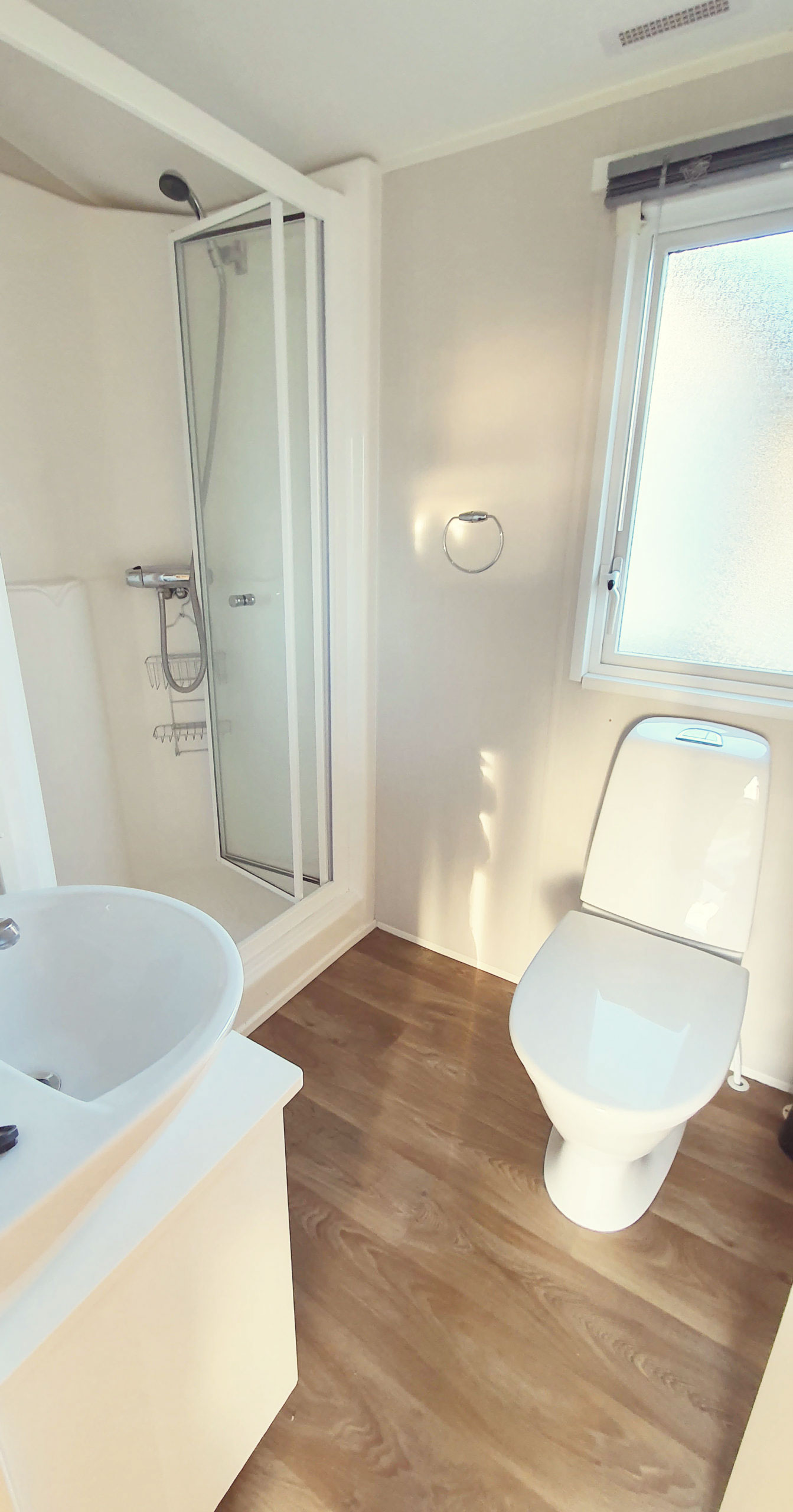 Här erbjuds rymlig komfort såväl i villavagnen som på den sköna uteplatsen. I denna villavagn bor ni bekvämt i 2 separata sovrum och med 1 dusch/wc och 1 wc.