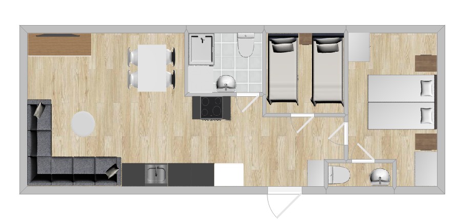 - 1 dubbelsäng i ett sovrum & 2 enkelsängar i ett sovrum